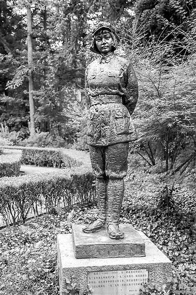 图为井冈山革命烈士陵园内的伍若兰铜像。